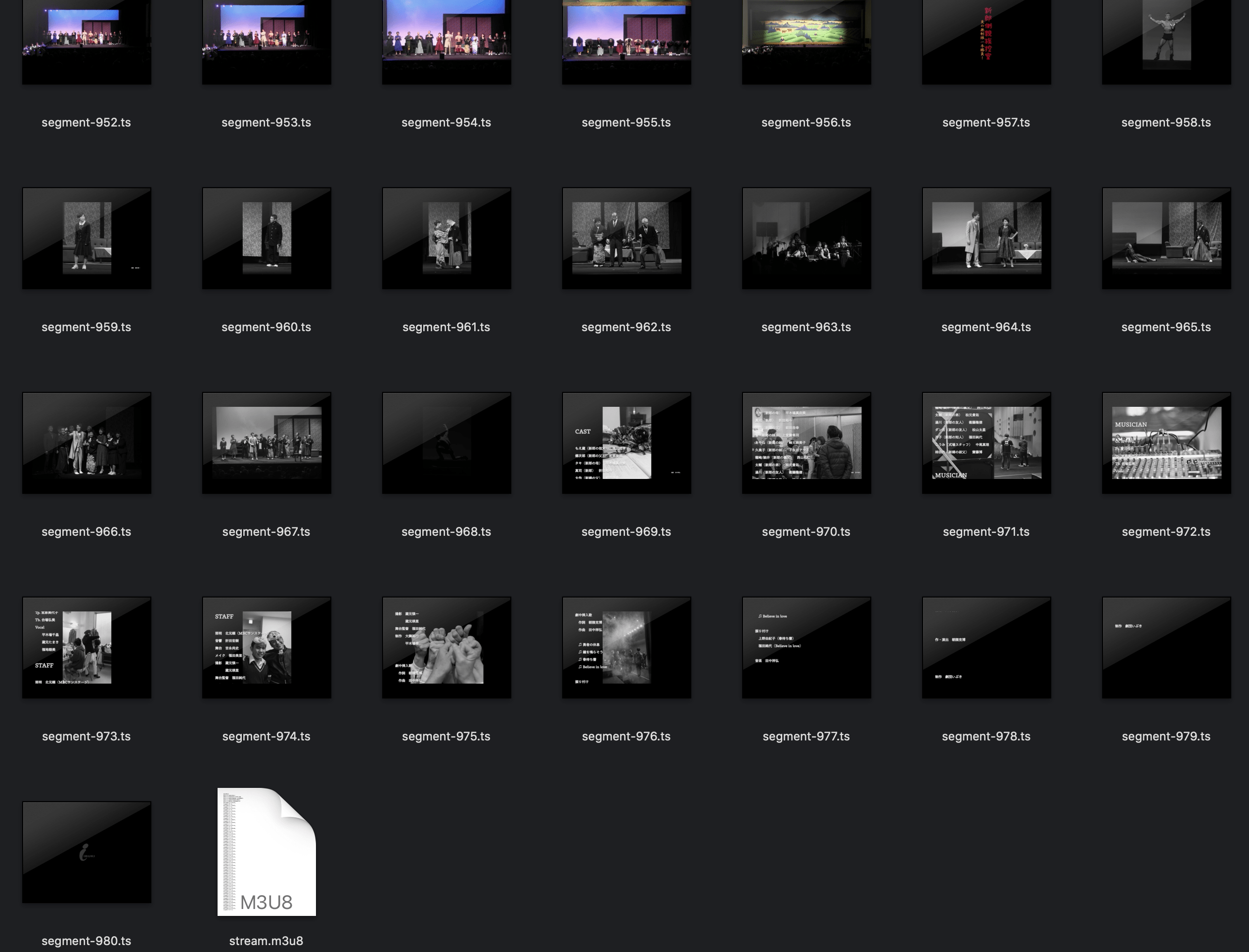 segment-0.tsからsegment-980.tsと stream.m3u8 が出来た!